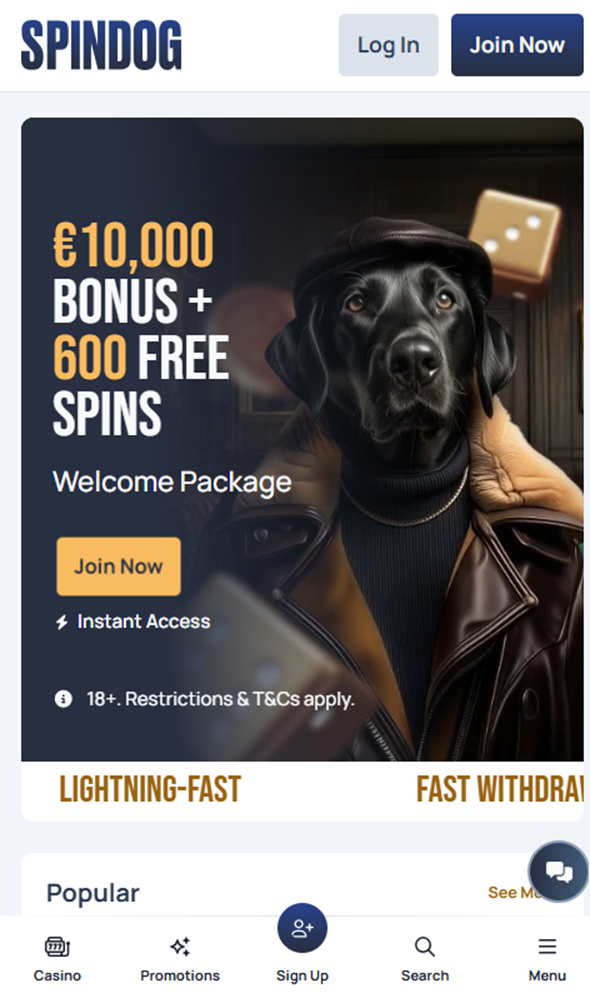 4. SpinDog – Online casino app met grootste spelaanbod