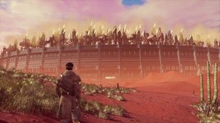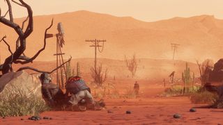 The cutscenes play out in still frames, like the pages of a comic book. Protagonist Robert Foster, his friend, and his friend’s son are attacked by the drivers of a mysterious four-legged vehicle while on a fishing trip. The child is stolen by these masked figures, when he and his friend are incapacitated, and Foster attempts to find the boy, who has disappeared with his captors into the endless sands of the "Gap" (imagine an apocalyptic Australian outback). The trail takes him to the hulking walls of Union City, one of the only megacities that has survived the cruel conditions of the apocalypse.