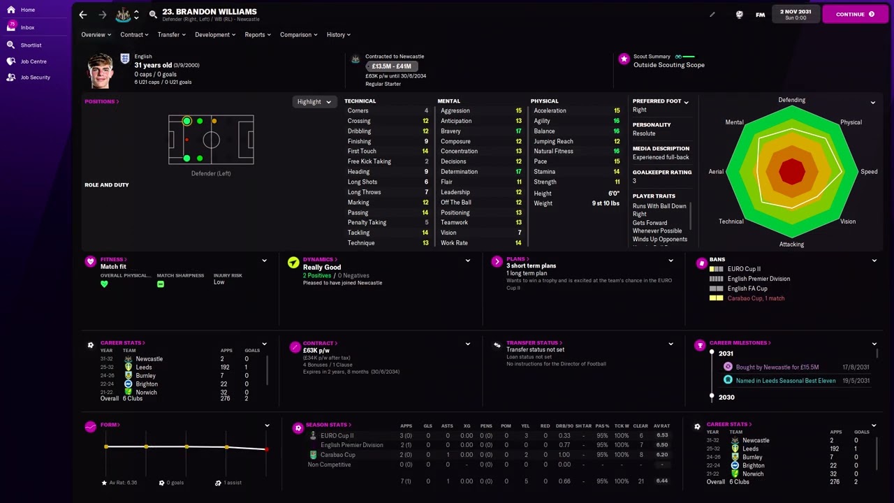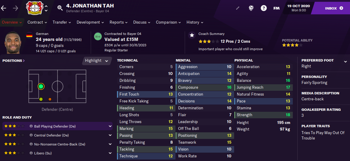 Here’s one to move on quickly. Jonathan Tah has confirmed he won’t be renewing his contract at Bayer Leverkusen this summer, and with Barcelona and Real Madrid circling, you’ll need to act fast. You’ll likely need to be managing a big club to secure him, but if you do, you’re getting a centre-back with some beastly physical attributes. And let’s be real: physicality is king in Football Manager.