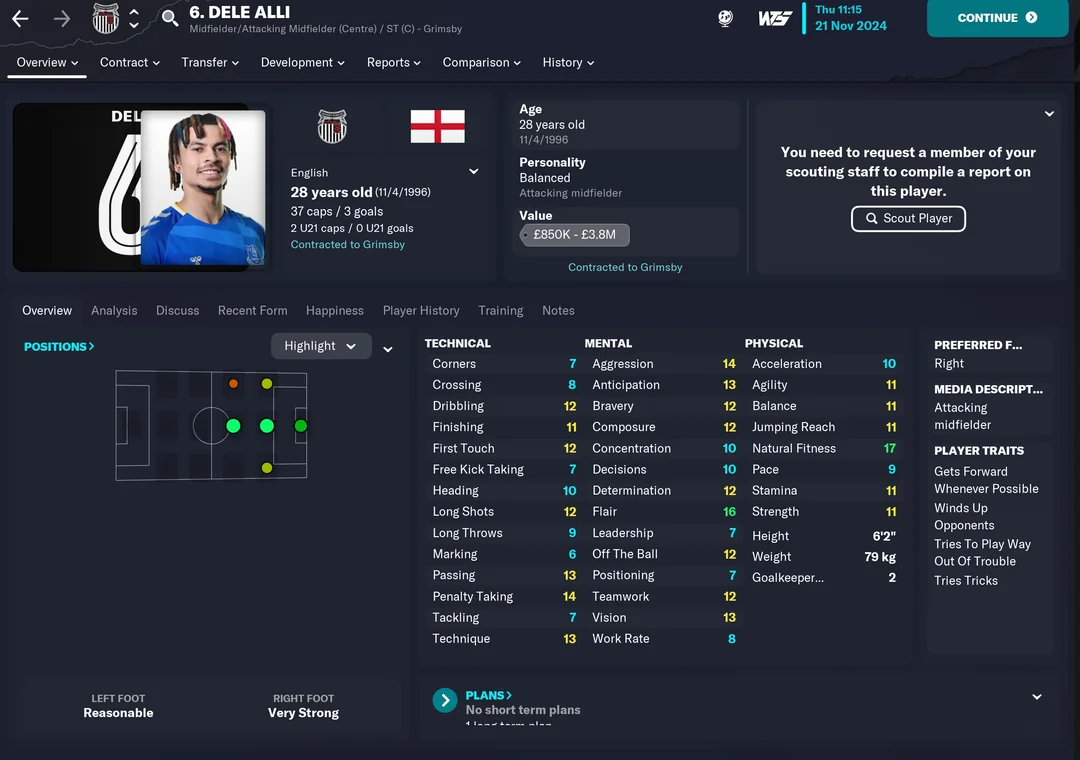 This one’s for the lower-league managers. Dele Alli has endured setback after setback, and injuries have derailed his career. By the time FM25 rolls around, it’s likely he’ll be a free agent. While his real-life career has taken an unexpected turn, there’s still potential for him to shine in the right Football Manager setup—perhaps at a League One or Championship side. Once upon a time, there was an exceptional player in there. I’m not ready to give up hope just yet.