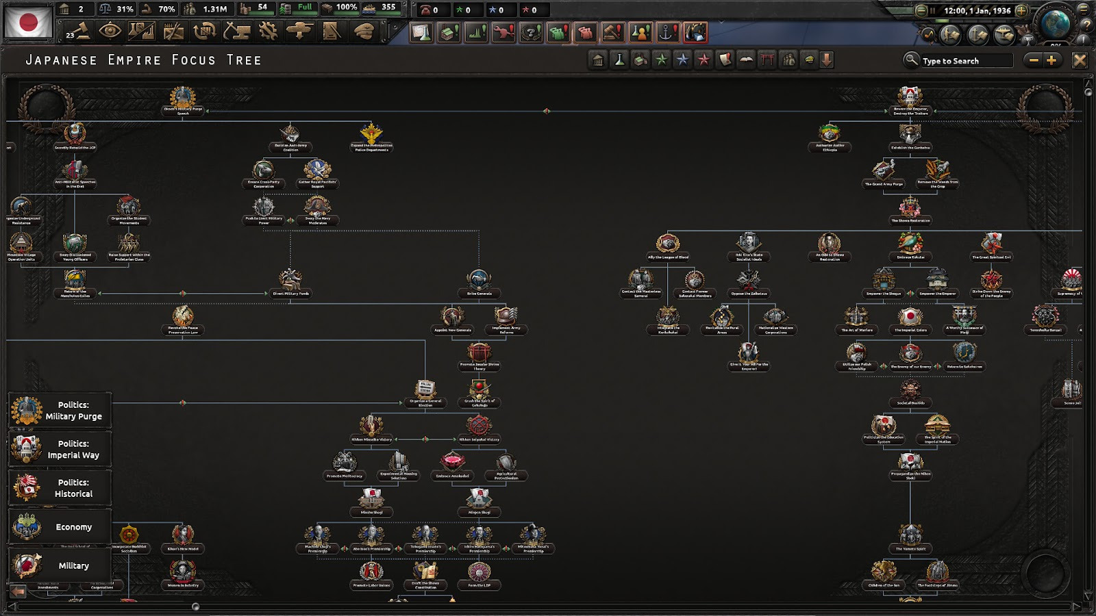 Nestled in the focus tree is the ability to endorse or suppress the influence of different factions in Japan’s complicated political web, outdoing the usual strictly binary push and pull of politics.