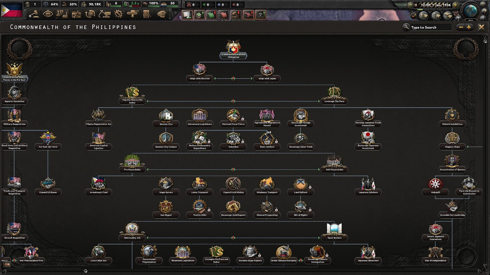 Hearts of Iron 4’s expanded focus on the Commonwealth of the Philippines is such an inspired choice because it has a wholly different feel from the rest of the expansion. The Philippines is not the master of their own destiny at game start; it’s under US hegemony. Your main campaign focus is the march towards independence, while trying to defend yourself from Japan’s imperial ambitions.