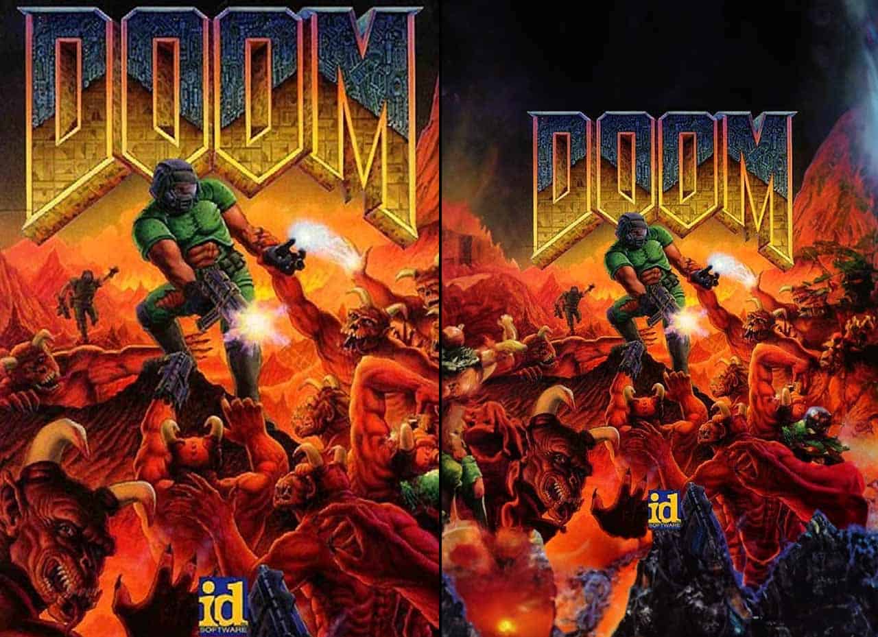For Doom, we tried to expand on the box-art a little. The original artwork is a hand-painted poster with demons and action at every corner. Following on from Photoshop’s varied response to Final Fantasy VII, we didn’t have the highest hopes for this experiment. However, the AI expanded image is actually quite convincing – from afar, at least. When you take a closer look, it’s composed of the hallucinogenic nonsense that AI art sometimes creates, but the illusion of reality is still there.