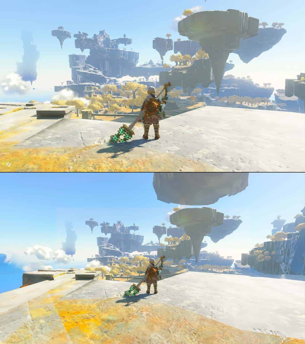 We then moved over to Tears of the Kingdom, which has a much brighter and charming style than Doom. We chose a still from in-game, then expanded the border as though the FOV slider had been cranked up.