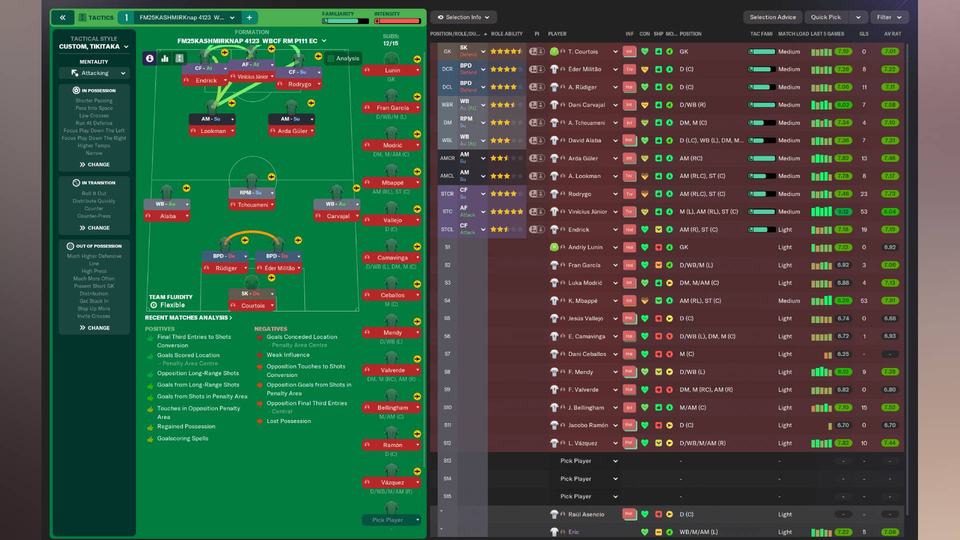 - Attack? Two attacking midfielders (Lookman and Güler) behind a front three of Rodrygo, Vinícius Jr., and Endrick. The striker roles are: Advanced Forward, Complete Forward, and Centre Forward—all on Attack. You get the idea.