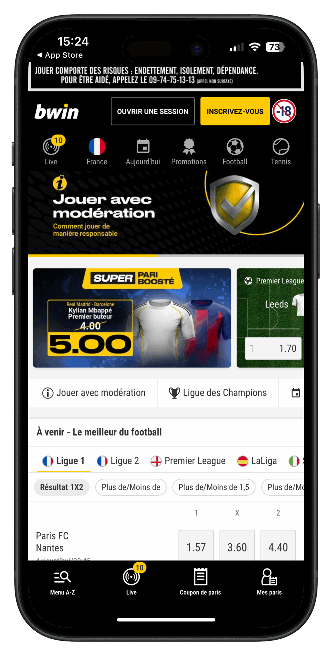 Le retrait immédiat est conditionné à la finalisation du protocole KYC. Pour les nouveaux joueurs, Bwin propose un bonus de bienvenue qui peut grimper jusqu’à 100 euros si le premier pari est perdant et de 30 euros s’il est gagnant. Les méthodes de dépôt sont la carte bancaire, PayPal, Skrill, Paysafecard, Ticket Premium, Neteller ou encore le virement bancaire.