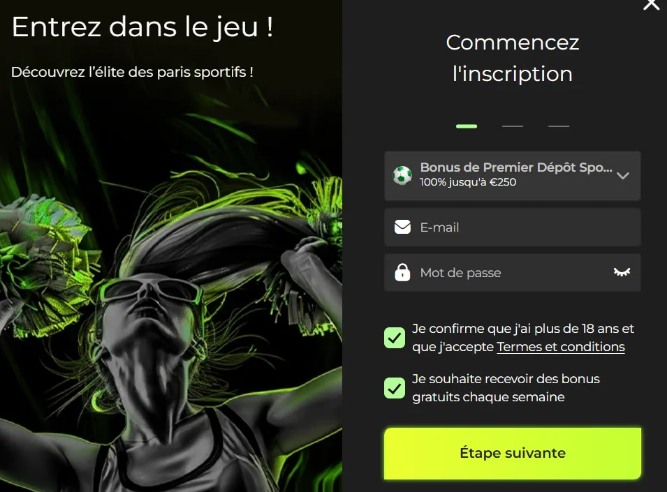 L’inscription sur Circus Bet est rapide, le processus étant parfaitement optimisé. Il suffit de cliquer sur le bouton vert, “S’inscrire”, en haut de l’écran, à droite. Renseignez ensuite vos informations personnelles et validez votre inscription par un premier dépôt.