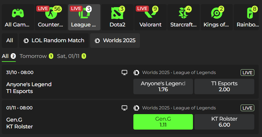 Il est possible de parier sur l’eSport (League of Legends, Valorant, Counter-Striker 2) en Belgique ou depuis les bookmakers offshore.