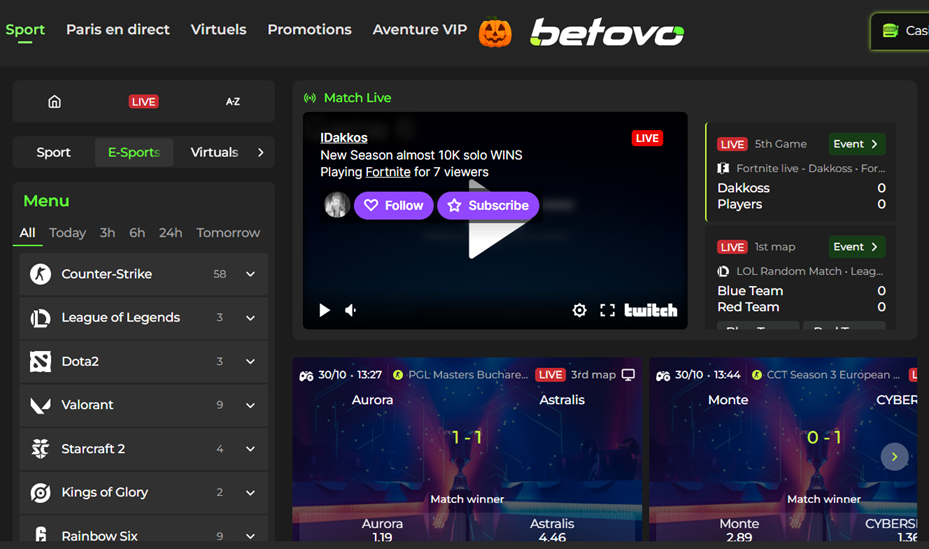 Les principaux tournois sont disponibles pour parier, comme les EMEA (Masters européens) pour League of Legends ou l’European Pro League, pour Counter-Strike 2.
