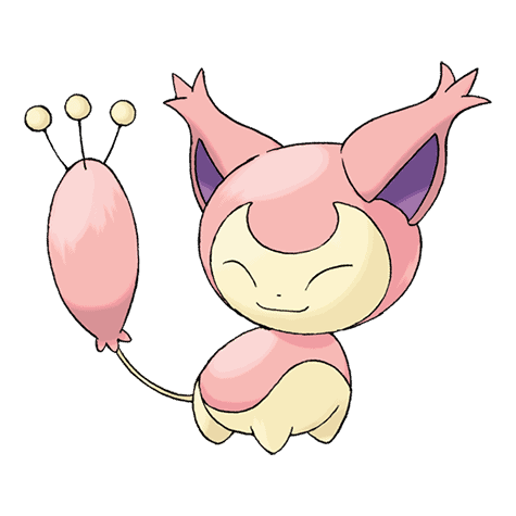 This cute feline is always smiling; it has pink fur, big ears, and cuddles around itself in a way that forces an awww out of you. It’s so well-rounded from its face to its tail, and that’s another topic. Its cute tail has a large yellow puff ball at its end that looks very cute but is very deadly by inflating and deflating it to intimidate enemies. Skitty is just a unique Pokémon, and if you like cats, you will love this pink puffball.