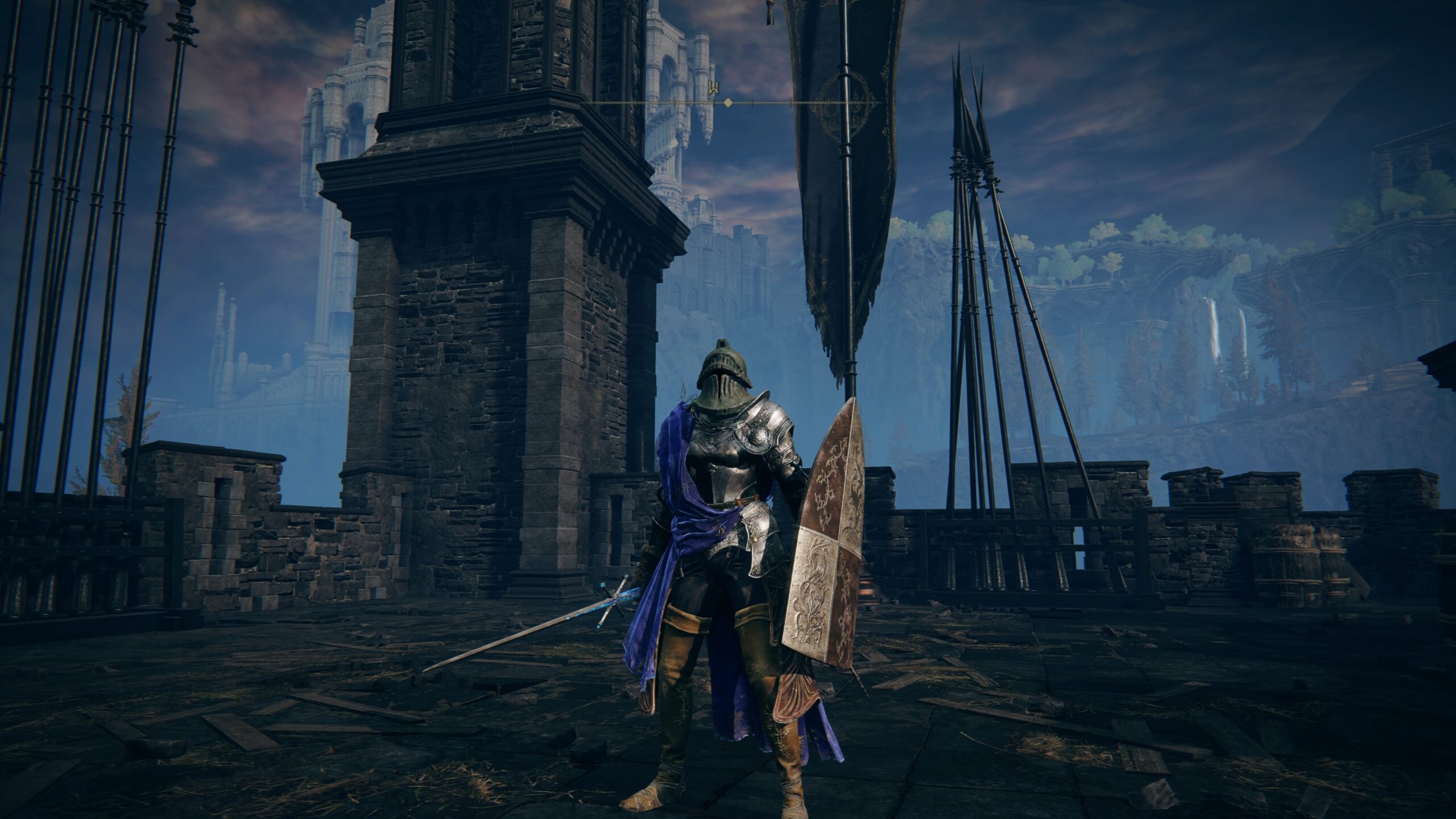 The Carian Sorcery Sword can be found in a chest on a castle wall in Castle Ensis. Before you can get the weapon, you must defeat Rellana, Twin Moon Knight and reach Scadu Altus. Start your journey from the Highroad Cross Site of Grace and head west until you reach a cliff overlooking a river. From here, follow the cliff north to locate an area you can drop into the river.
