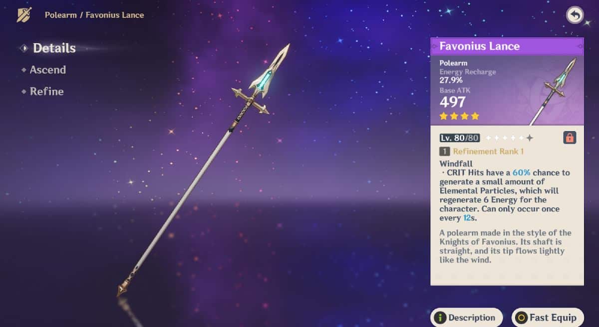 1. Favonius Lance (4-Star)