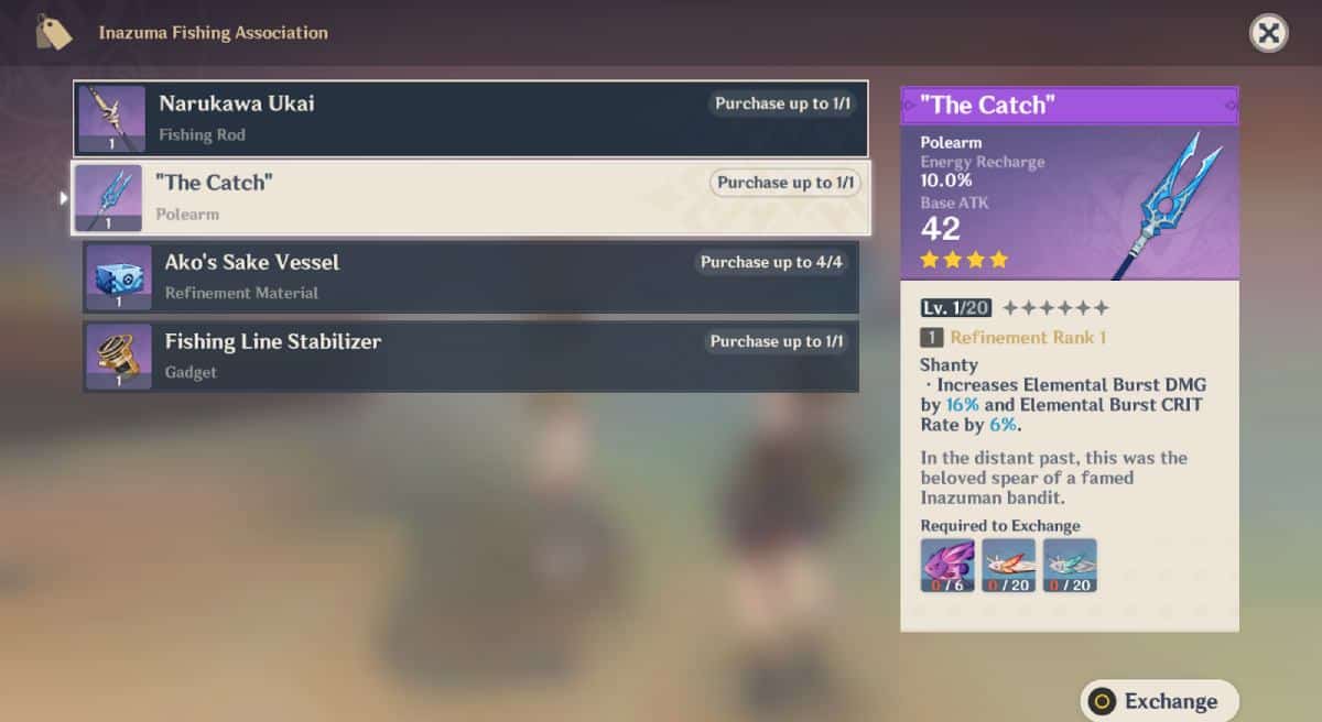 However, we would advise considering other free-to-play options first on Mika as he his Burst doesn’t deal any damage. Hence, the Catch’s Passive that increases Burst DMG would be wasted. You can resort to the Catch for its high ER if you don’t have it equipped on any other character and can swap it back in the future for a better option than Mika.