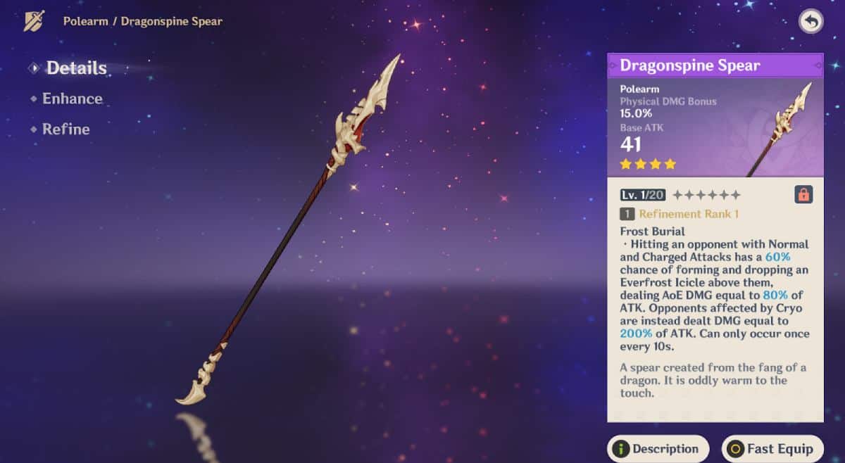 5. The Dragon Spine Spear (4-Star)