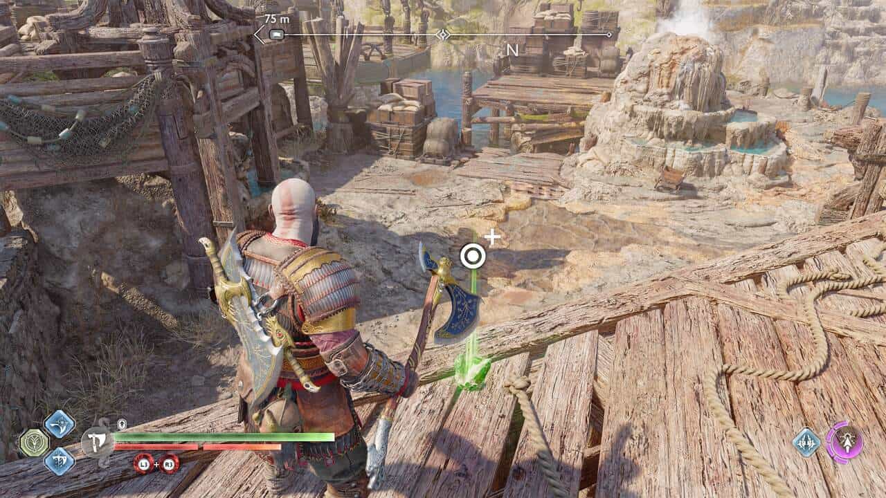 If there’s no mystic gateway in your immediate vicinity, God of War Ragnarok’s world is peppered with green health stones that you can stomp to replenish a set amount of health depending on their size. Larger stones grant more health, small ones less health. To use a health stone, press Circle when you’re close by and the corresponding prompt appears on-screen