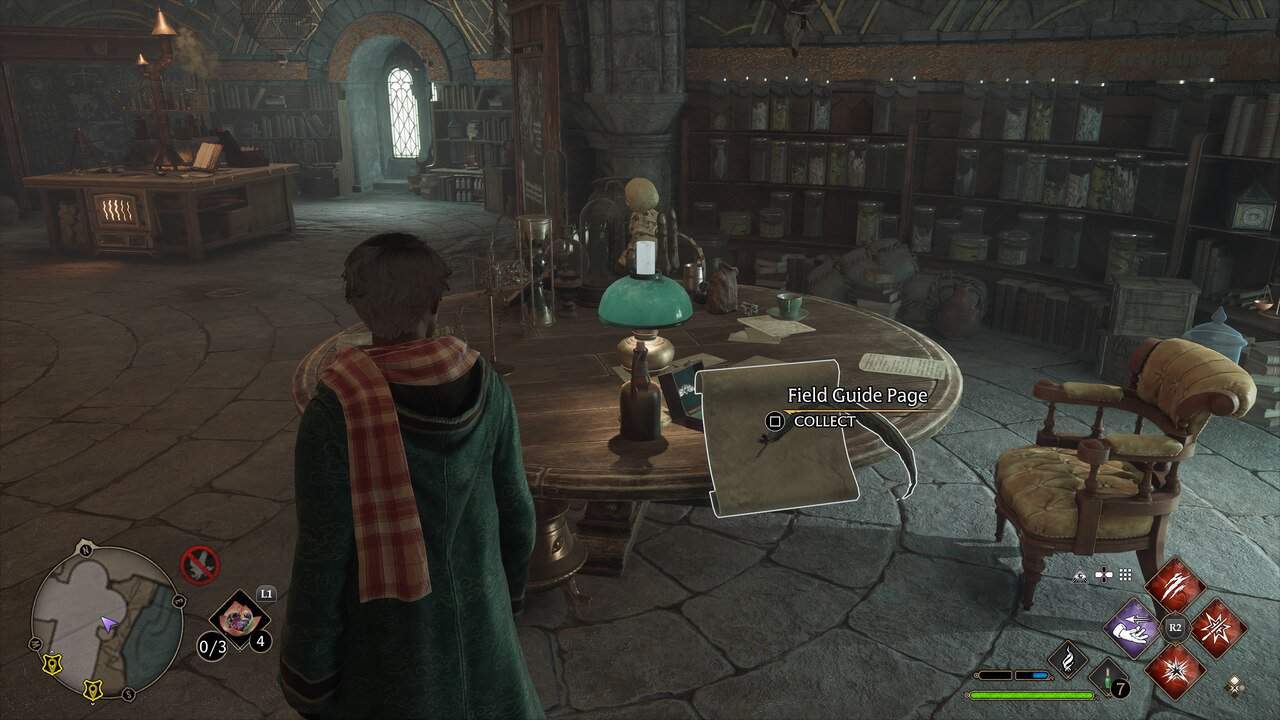 Fast travel to the potions classroom. Head through the double doors ahead and then go through the door straight ahead into the classroom. The Field Guide Page is to the right of Professor Sharp’s desk at the back of the room. Use Revelio to reveal the page.