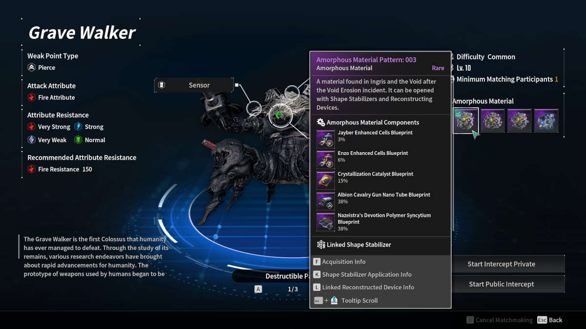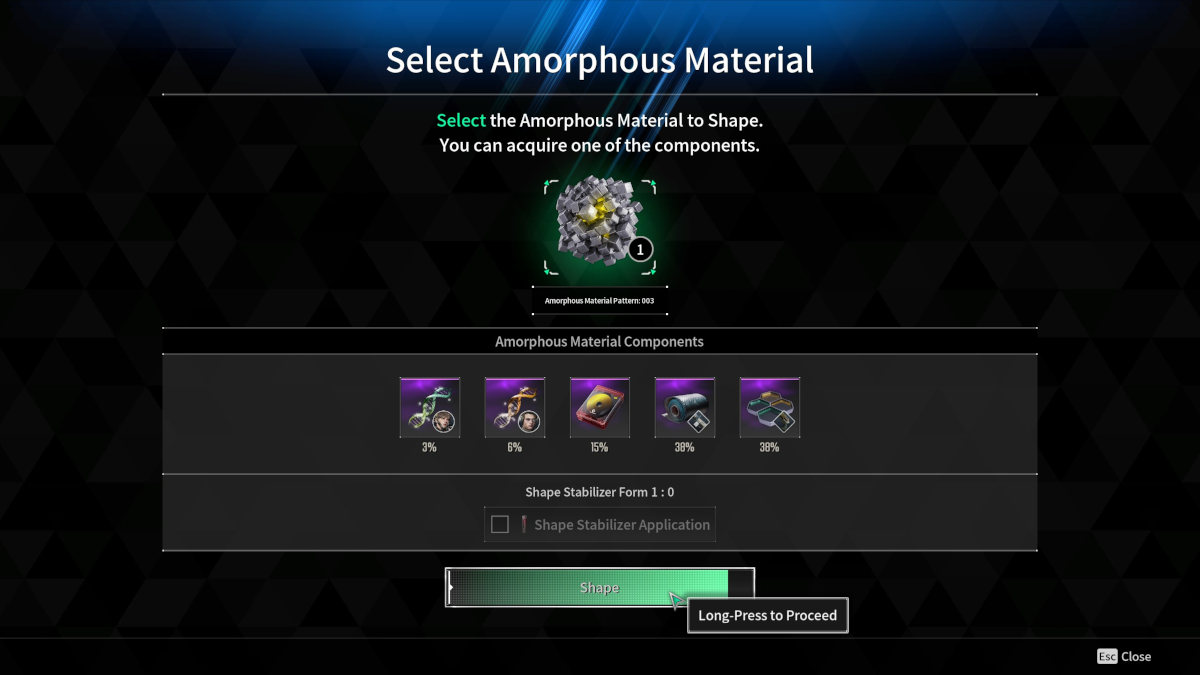- When the boss is defeated, it will spawn a Reconstructed Device that will open your Amorphous Materials.