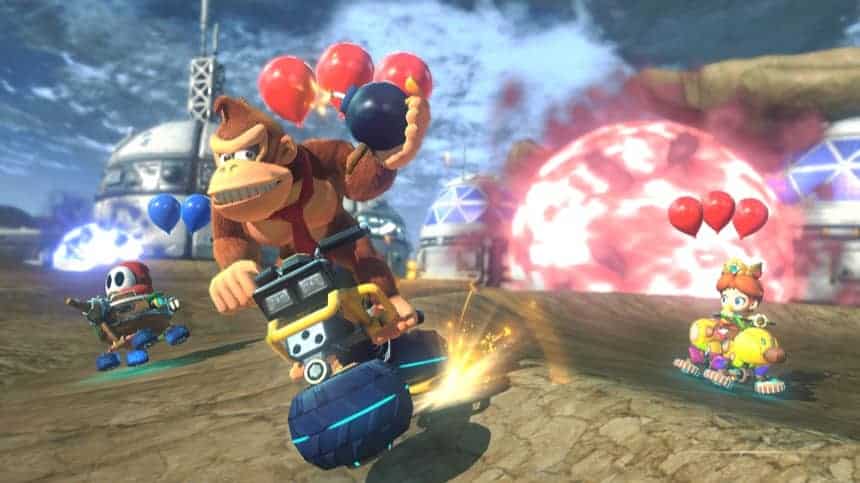 In addition, Donkey Kong really weighs down his kart because of him being a heavyweight character, so be sure to select the right wheels when keeping that in mind.