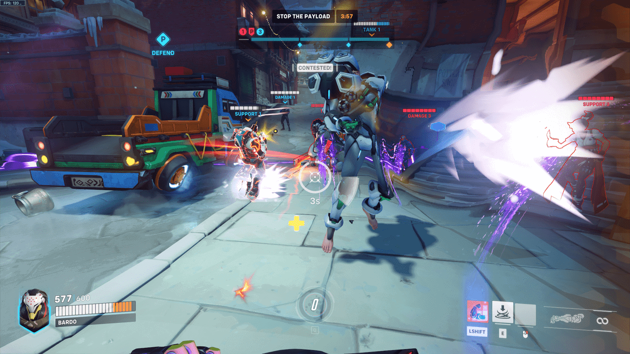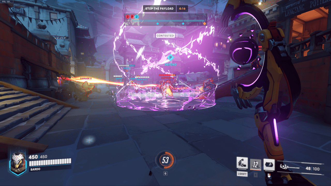 The second ability of Ramattra’s Nemesis Form is a block that reduces incoming front damage. The trade-off is a momentary reduction in movement speed and leaves Ramattra’s back exposed to enemy attacks.