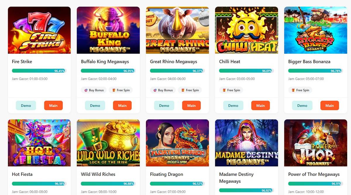 Slot gacor adalah istilah yang menggambarkan slot dengan RTP tinggi & frekuensi menang yang lebih bagus. Bukan jaminan untuk menang, tapi lebih menguntungkan dibanding slot biasa.