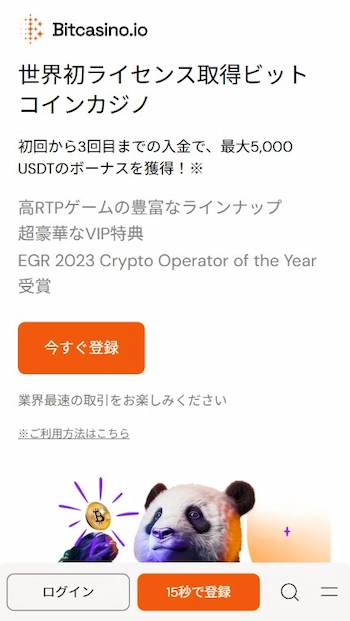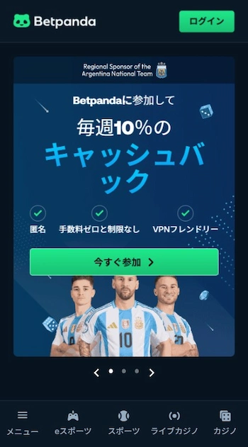 ベットパンダは、インパクトあるウェルカムオファーが魅力の仮想通貨カジノ。初回入金で最大1BTCのボーナスを獲得でき、出金上限がないため大勝利もそのまま引き出せます。
