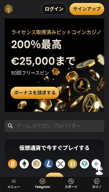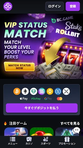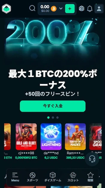 ゲームリストには、8,000タイトル以上がずらり。69社のプロバイダーによるスロットやライブカジノ、最新作に加え、RTP99%超えのオリジナルゲーム22種も提供。クリプト報酬以外にも、最大200%$10,500のウェルカムボーナスや、VIP制度での限定報酬、キャッシュバックといった特典も豊富で、仮想通貨カジノの醍醐味を余すところなく楽しめます。