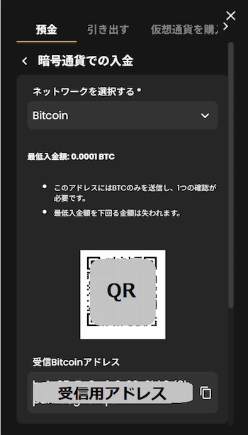 取引所から仮想通貨オンカジへ資金を入金します。カジノサイトの入金ページで通貨と金額を指定し、表示された入金アドレスをコピーします。