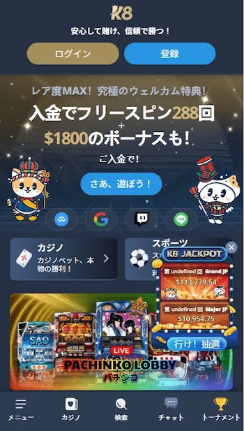 K8カジノは、スロットからパチンコまで一連のゲームを網羅した仮想通貨 カジノ。ビットコイン、テザー、リップルなど11種類の仮想通貨を使って、4号機や5号機といった懐かしのパチンコ台をプレイできます。