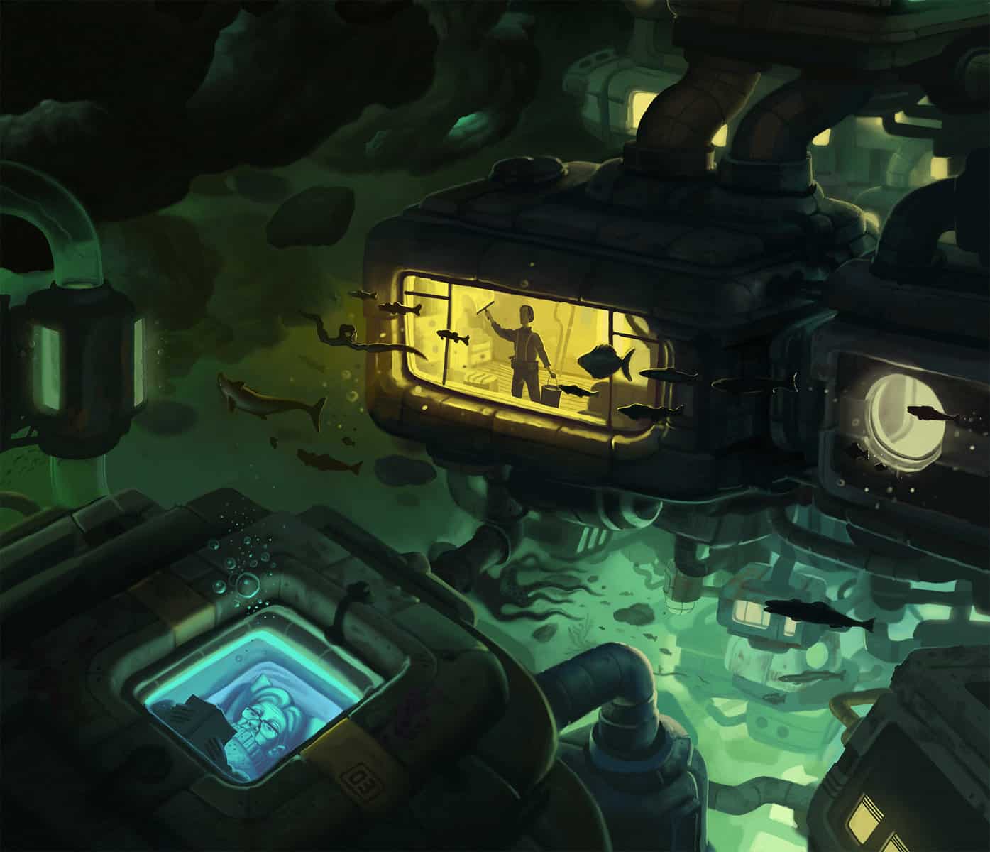 Harold Halibut is an adventure game set on a 70s spaceship that’s managed to get stuck underwater on a distant ocean planet. The titular Harold is a janitor and lab assistant on the aforementioned ship, trying to help Professor Mareaux relaunch the ship, because it’s been stuck for hundreds of years. Harold himself was born years after the crash and never knew life on Earth.