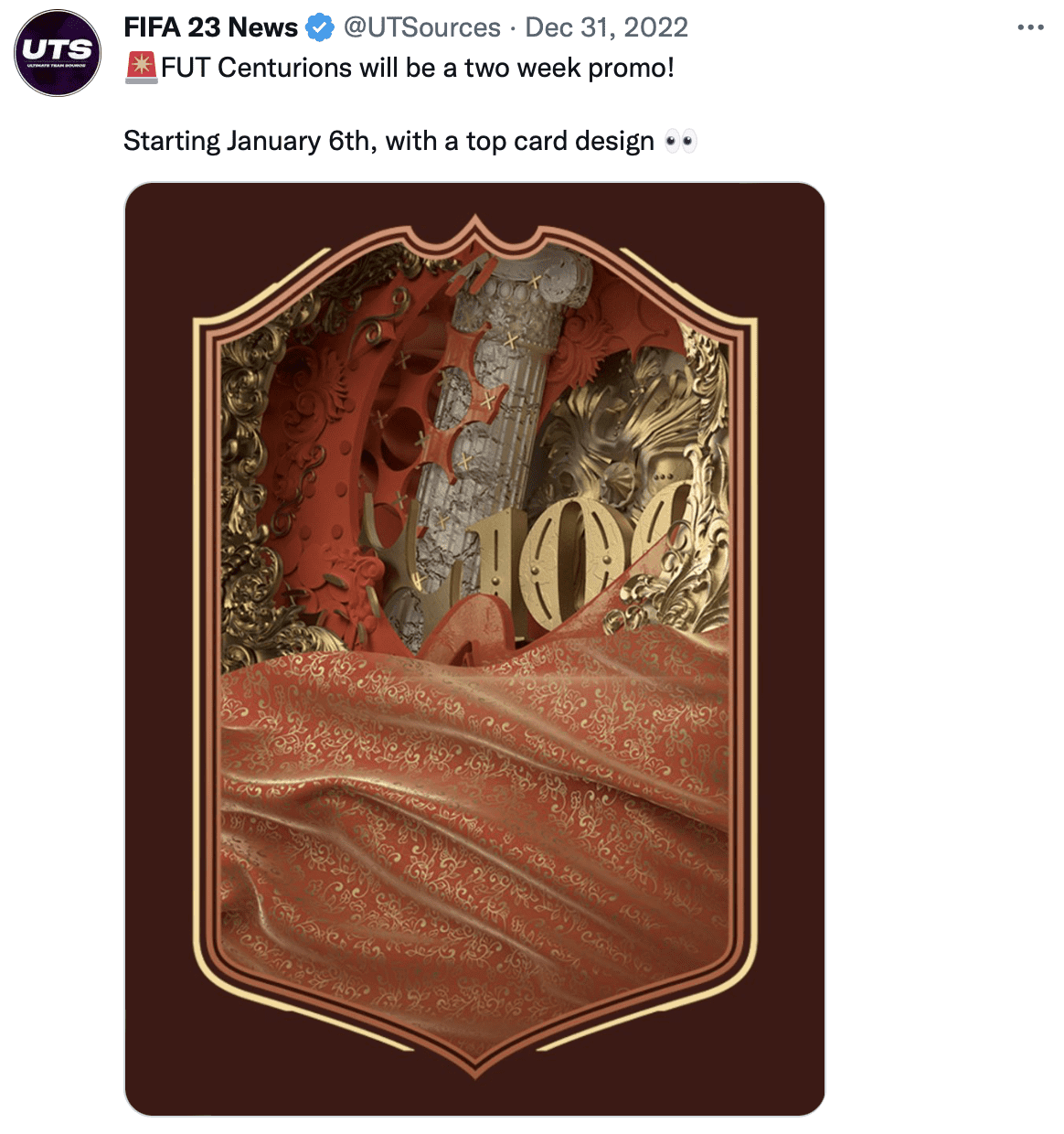 TOTW is returning, a new year has begun in FIFA 23 and with it comes a fresh promo. The new promo in FIFA 23, following the two week long Winter Wildcards promo, is called FUT Centurions.