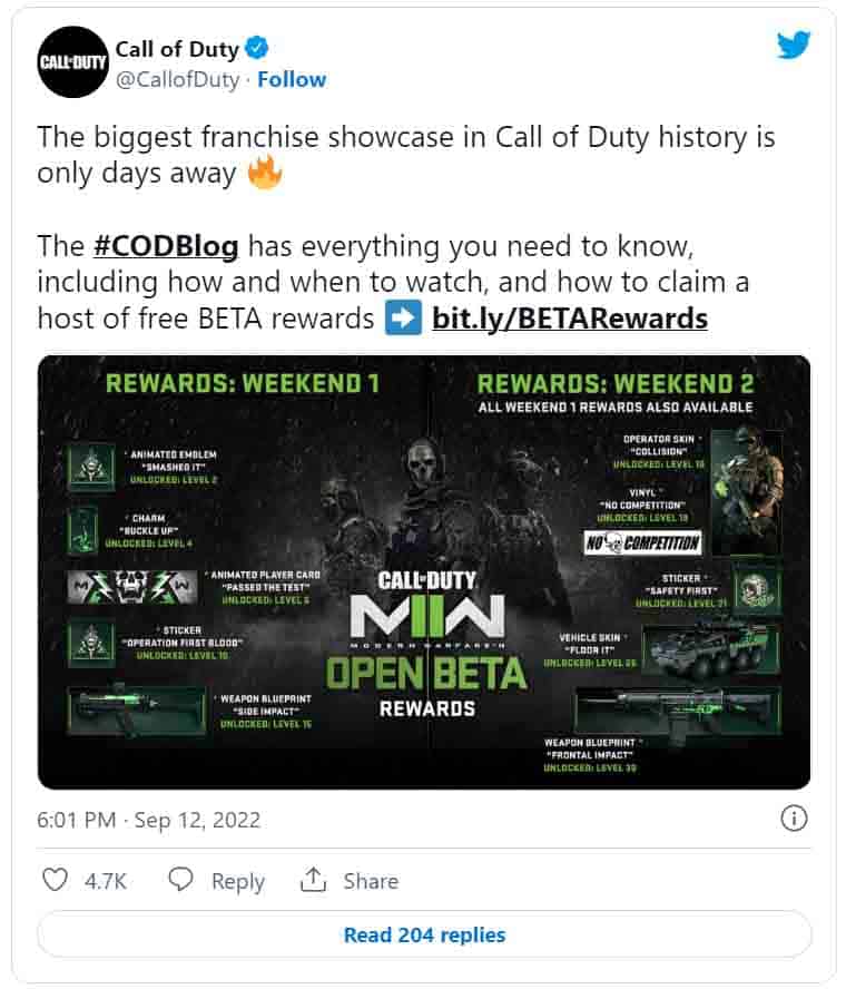 Activision Blizzard has detailed a bunch of rewards players can earn for Modern Warfare 2 if they take part in the game’s upcoming beta.