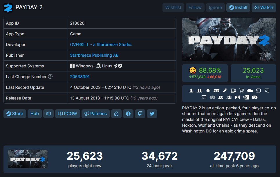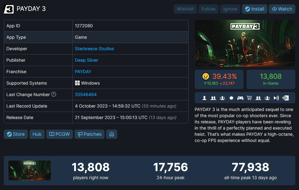 Fans looking for the nostalgic experience, or even simply a more whole experience, have found themselves looking back to the game released in 2012, rather than 2023’s sequel. In fact, in the last 24 hours, 34.6K players have logged into the older game, compared to a measly 17.7K players on Payday 3. You can have a look at these stats yourself via the SteamDB pages for both Payday 2 and Payday 3.