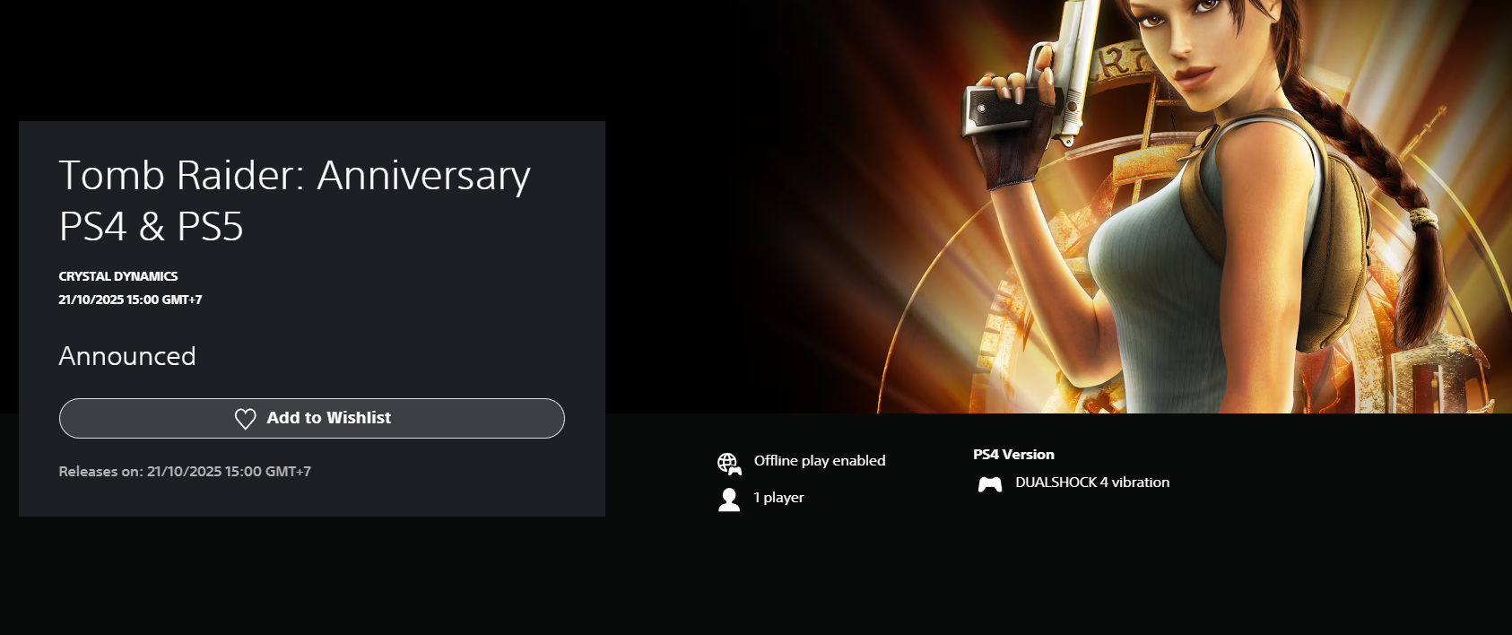 The PSN store may have spoiled the surprise addition of Tomb Raider Anniversary for PS Plus Premium. Sony’s next batch of Extra and Premium games are scheduled to come out on October 21st, and, interestingly, this is the same release date for the PS2 port of Tomb Raider Anniversary listed on the PSN store.
