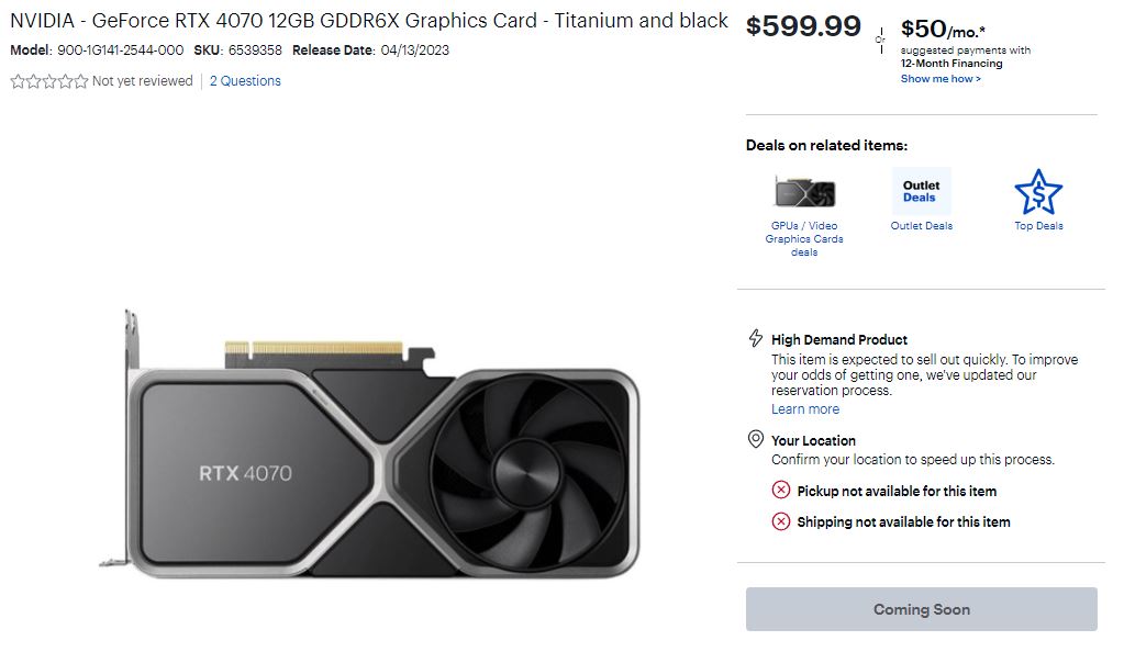 You can’t buy the graphics card just yet, though some retailers are giving you the option to ‘be notified.’ Other retailers, such as Amazon and Best Buy, are telling you that it’s “coming soon.” We’re going to be keeping an eye out on all retailers for when they’re officially listed, as this will give you a huge advantage trying to pick one up.