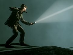 This is just one of several memorable set pieces, all of which are squeezed into a comparatively small piece of DLC. One section finds Wake moving through a rotating wheel of rooms, with apparitions of characters from the game shouting cryptic nonsense as he plods through. As it turns, gravity rolls objects that previously blocked the way, and opens doors that it once held in place. You’ll jump down holes that were once skylights and defy the laws of physics by running across ceilings.