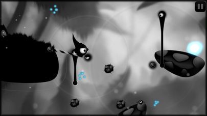The game’s highlight is its downbeat presentation, linking together moody colour palettes with sombre accordion tunes to create a slightly miserable look which certainly stands apart from the saturated majority of the App Store. As you progress through the game’s worlds – 60 levels in all – your weenie blob character, Petit, changes from greyscale to luminescent, but the monochromatic world never perks up.