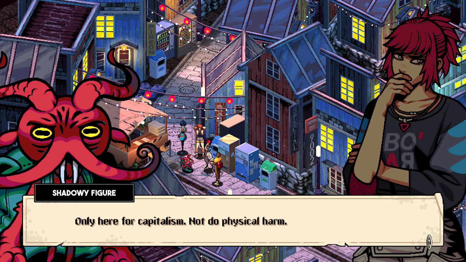 The hellish yet vibrant nature of the world feels already strongly established, with the only exposition fed to you in small nuggets as you dash to try and keep pace with the story. Without a dialogue log to look back on what’s been said, however, you’ll have to try and commit its humorous, horrific, and heartfelt moments to memory.