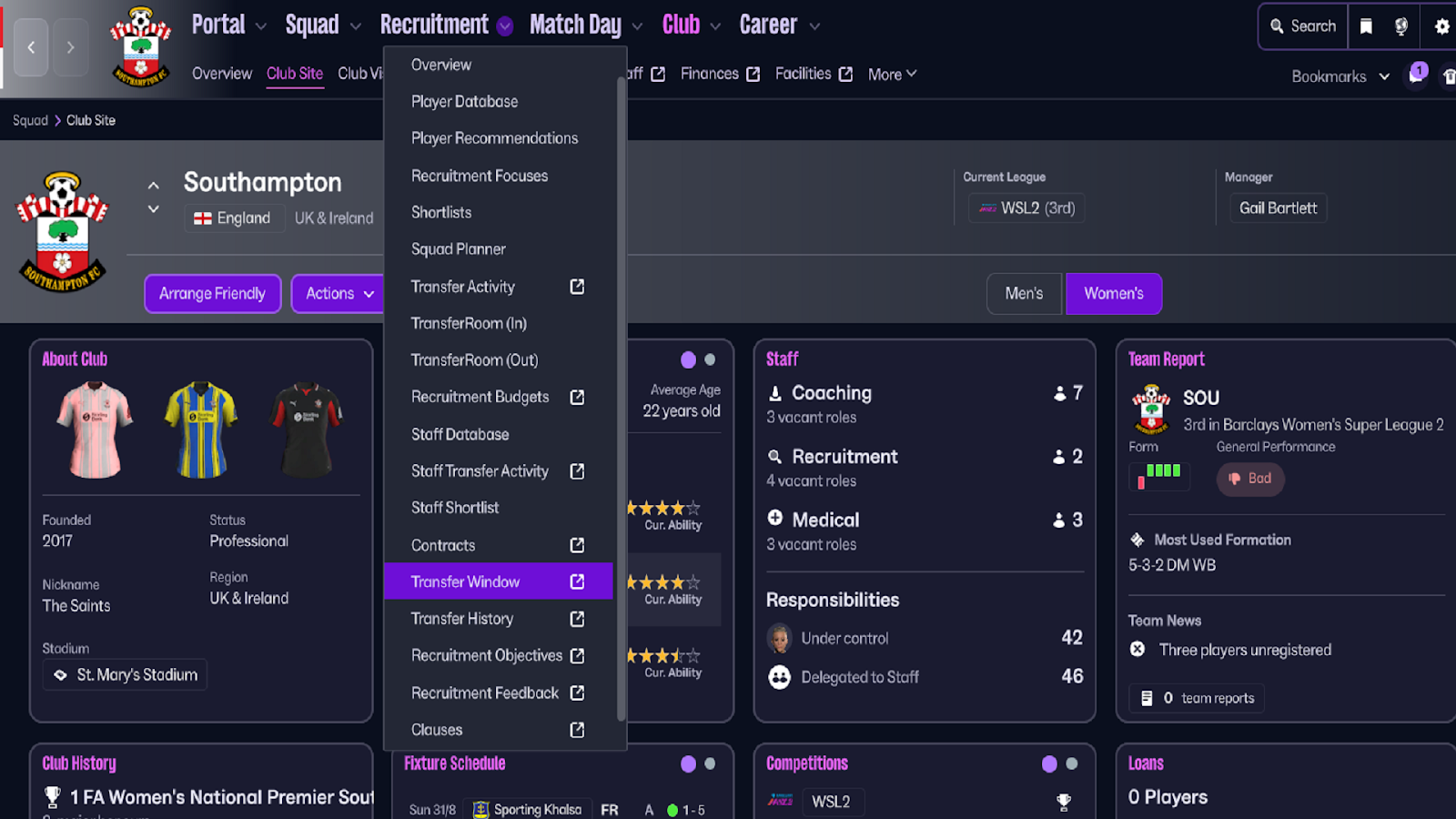 In some cases, this is smooth and immersive, but at times it was a little hard to get used to. Take contract information, for example. I had expected this, as a core part of club management, to have its own screen. Instead, it opens in a pop-up. As contracts are directly accessible from the navigation bar, the only difference this made for me is a slightly smaller window to read my team’s contracts on, which felt off.