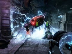 You face big robots, small robots, weak robots, incredibly strong robots, super tall robots, flying robots, robots that leap out of shipping containers, zombies (that are a bit robotic) and it’s all a lot of fun. But samey. A lack of visual variety doesn’t help things, the core levels found in the original release (before new content was added) could be one massive level, and the design is so, so familiar – a kind of Blade Runner meets Deus Ex running on a supercharged Pentium II and 3DFX combo. (And you might think the game is actually running on a 3DFX card if you’re playing on Xbox One – the frame rate at times is awful, so go with PS4 or PC if you have the option)