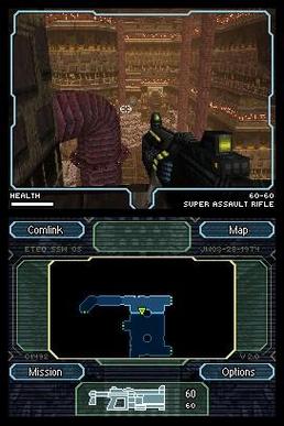 It’s the year 2058. While working on Lunar Outpost Alpha, a geographical excavation reveals a mysterious underground structure of non-human origin. For any normal man this might come as something of a shock, but you’re Major Kane, the man in charge of military operations for the Extra-Terrestrial Encounter Organisation, and you’ve been sent in to check it out. This is all presented with b-movie quality cutscenes and voice over work, but it fits the bill quite well and isn’t something we’re used to seeing on the DS. It’s cheesy in the extreme, but quite enjoyable in a forgettable way.