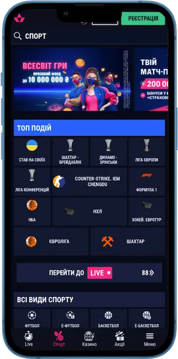 Міжнародне казино із українською ліцензією. Сильні сторони — live‑казино, шоу‑ігри, багатий розділ спорту. Підтримка клієнтів працює цілодобово.